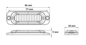 Abmessungen, B x H x T: 86 x 9 x 28 mm