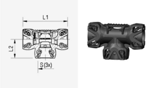 ABC T&L Verteiler 3-Wege, gewindelos
